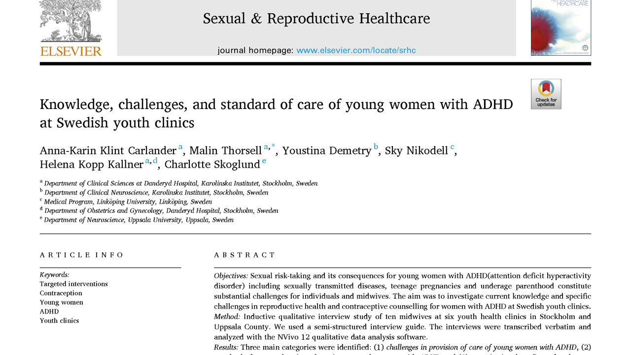 Knowledge, challenges, and standard of care of young women with ADHD at Swedish youth clinics
