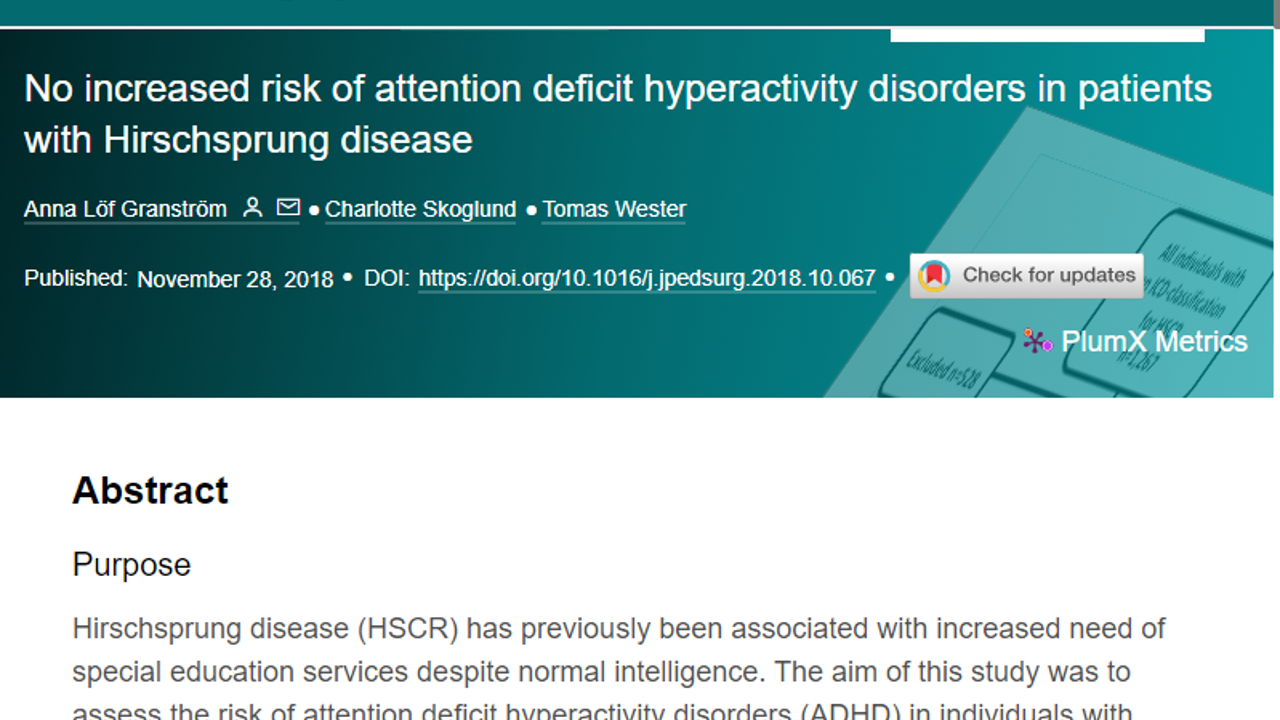 No increased risk of attention deficit hyperactivity disorders in patients with Hirschsprung disease
