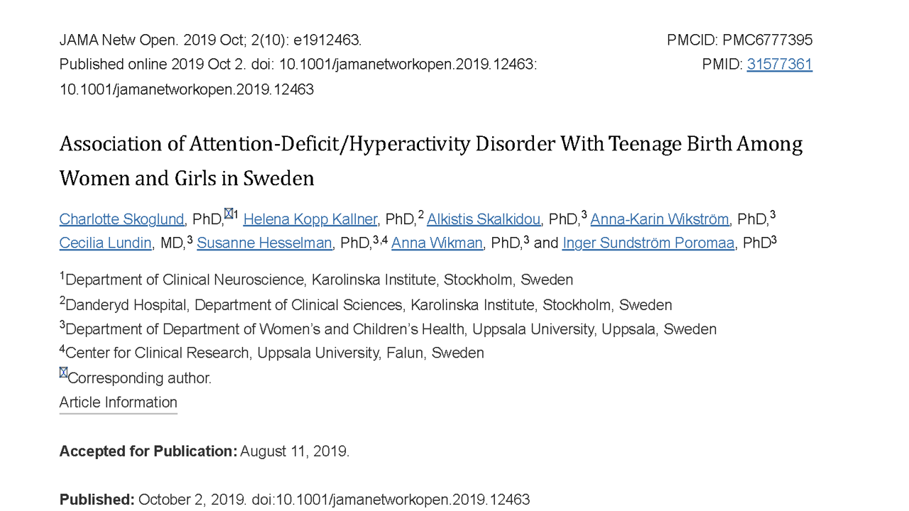 Association of Attention-Deficit/Hyperactivity Disorder With Teenage Birth Among Women and Girls in Sweden