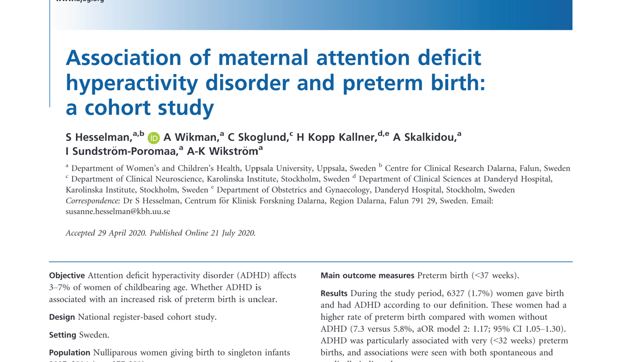 Vi visar att kvinnor med ADHD, jämfört med andra, har högre risk att föda prematurt och mycket prematurt (<vecka 32), vid såväl spontana som inducerade födslar.