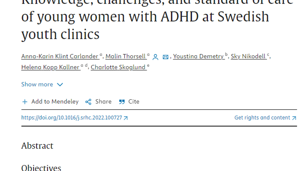Knowledge, challenges, and standard of care of young women with ADHD at Swedish youth clinics