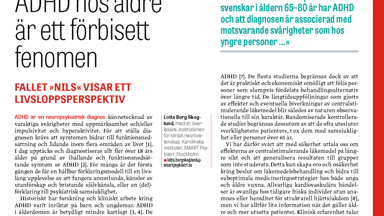 Det saknas kliniska riktlinjer och validerade skattningsinstrument för utredning och behandling av äldre med ADHD.